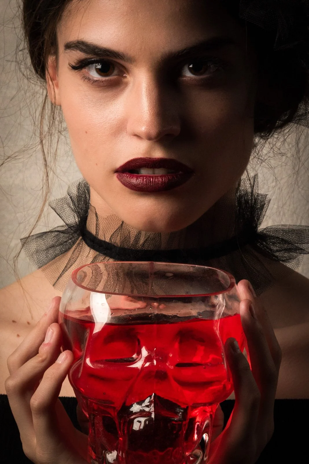 Person holding a bassoon in front of a black background. View fullsize